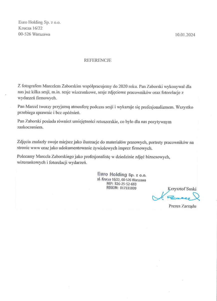 Polecamy Marcela Zaborskiego jako profesjonalistę w dziedzinie zdjęć biznesowych.